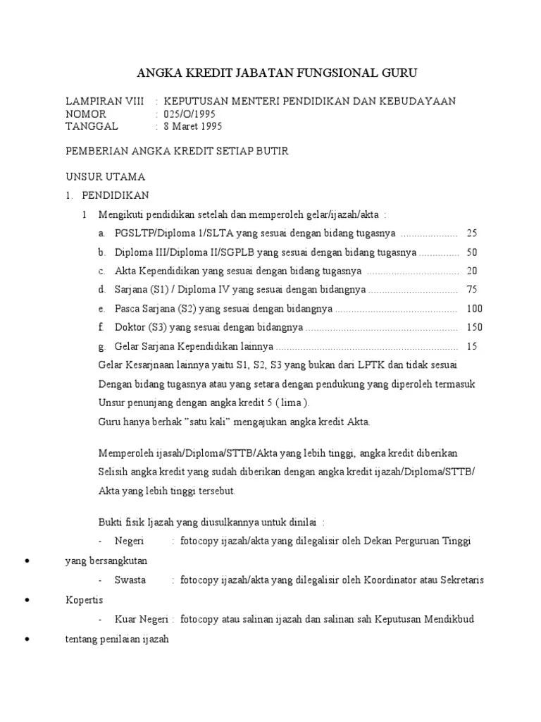 Petunjuk Pelaksanaan Jabatan Fungsional Guru Dan Angka Kreditnya / Kebijakan Jabatan Fungsional Guru Angka Kreditnya Oleh Sri Wahono Guru Sma Negeri 1 Bumiayu Bumiayu 5 Mei Ppt Download - Angka kredit adalah satuan nilai dari tiap butir kegiatan yang harus dicapai fungsional tertentu dalam rangka pembinaan karier kepangkatan dan jabatannya